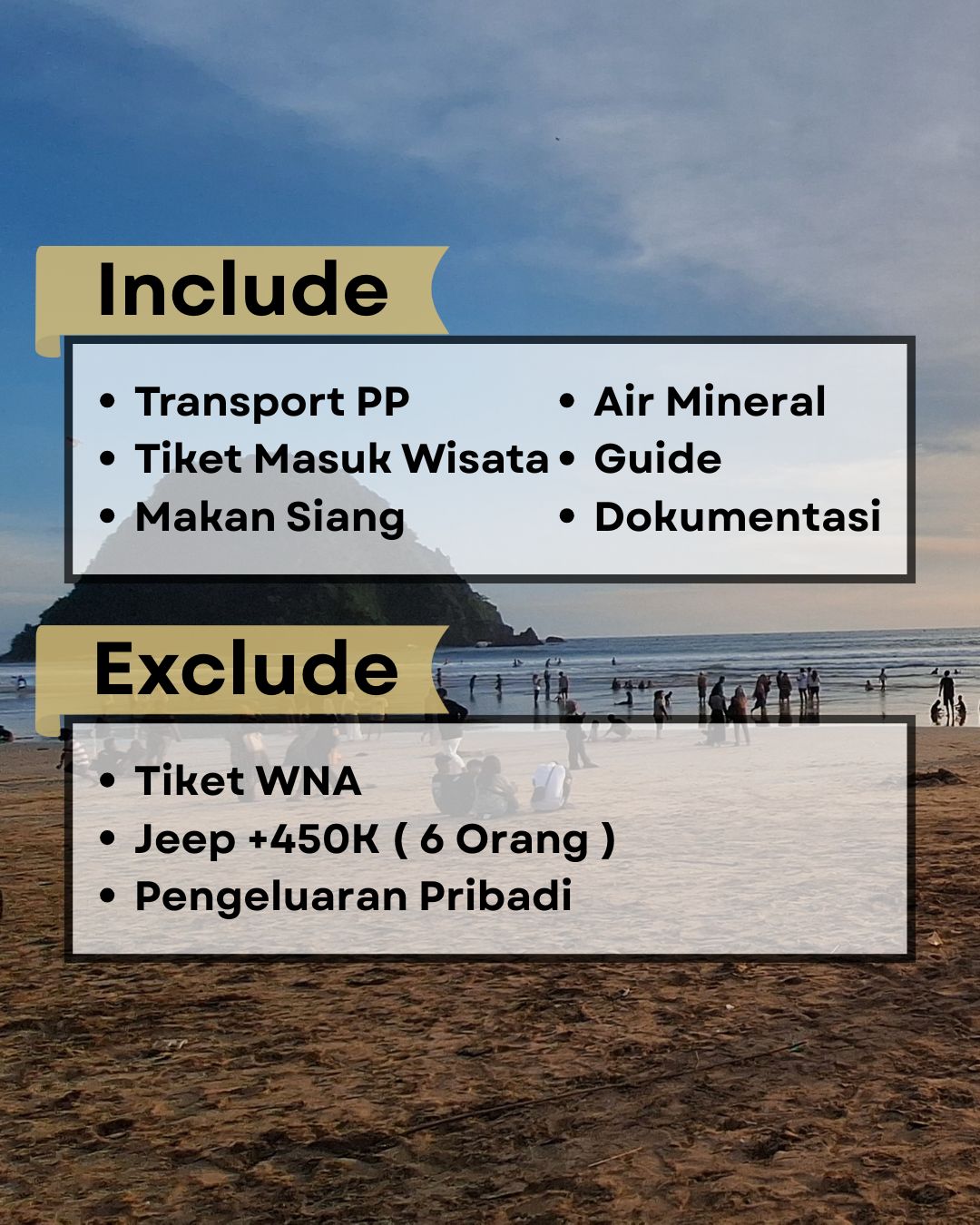 * Peserta open trip lebih dari 4 orang didampingi guide lokal.