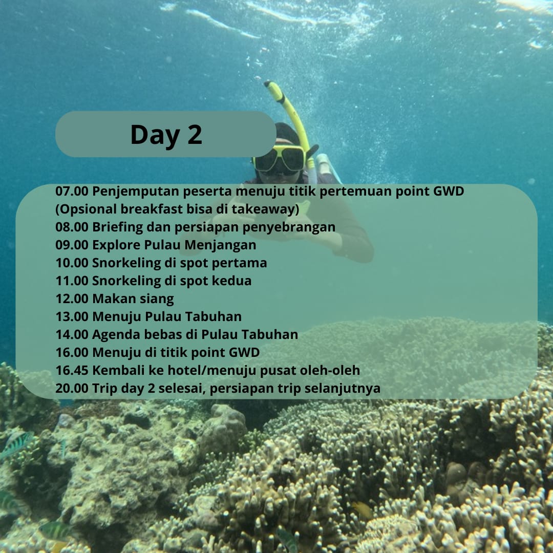 Itinerary tidak baku, menyesuaikan kondisi lapangan dan kesepakatan semua peserta open trip.